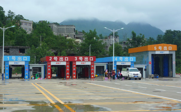 鎮(zhèn)雄洗車(chē)場(chǎng),安裝凱旋門(mén)5臺(tái)洗車(chē)設(shè)備,每小時(shí)洗車(chē)近300臺(tái)